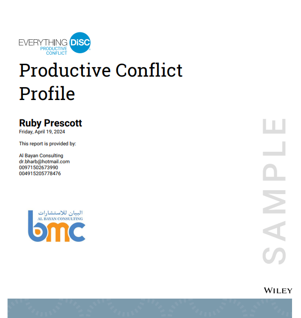 The Everything DiSC Productive Conflict Profile helps participants improve self-awareness around conflict behaviors. In this 22-page profile, participants will explore the destructive and productive conflict behaviors of each DiSC® style, learn how to manage their responses to conflict situations, and gain personalized communication strategies when engaging in productive conflict with colleagues.